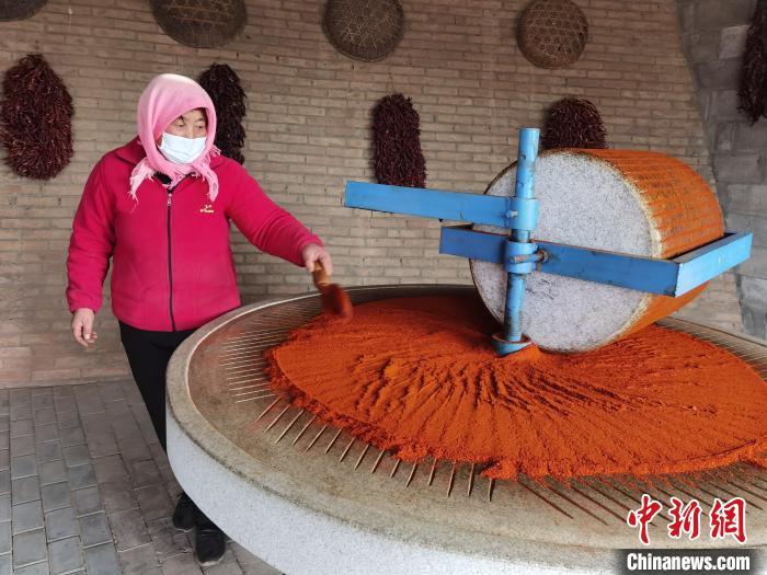 甘肅省慶陽市環縣莊子峁“辣嬸”直播宣傳自家的石碾辣椒面。(資料圖)安志鵬 攝