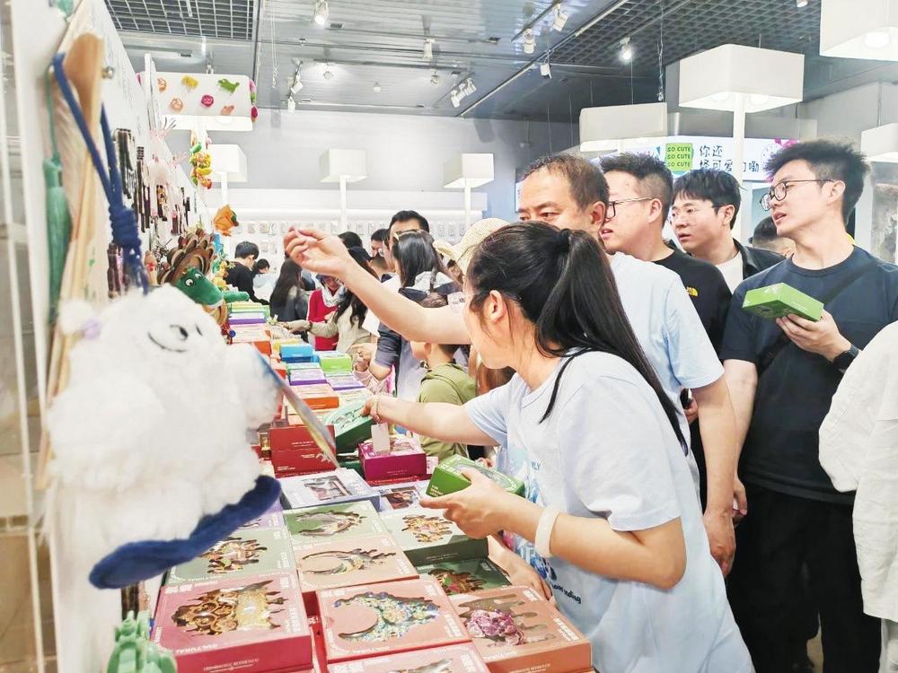 蘭州市博物館的“大明風華古風集市”人氣大旺,漢服商販、古籍文創等元素營造出濃厚的古代市井氛圍。“這個書卡很有年代感,既特別又有文化韻味。”市民張鑫在文創攤位前挑選了一幅民國時期字樣的“我堂堂”書卡。