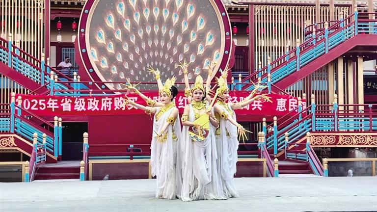 此次,甘肅演藝集團歌舞劇院將惠民演出與上元市集商業業態深度結合,形成“觀演+消費+體驗”的一站式文旅場景,演出在保留劇目精髓的基礎上,融入紅色文藝輕騎兵的惠民理念,以藝術之力,讓敦煌文化在當代煥發新生,也為文旅融合高質量發展寫下生動注腳。
