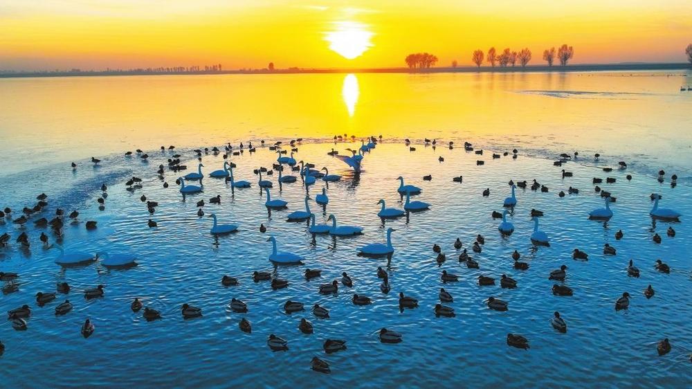 11月20日,甘肅金塔縣芨芨水庫濕地,遷徙越冬的白天鵝、赤麻鴨成群翔集湖面,成為初冬一道靚麗風(fēng)景。近年來,金塔縣持續(xù)改善生態(tài)環(huán)境,加強(qiáng)濕地保護(hù)與修復(fù)工作,為水鳥提供了理想的棲息場所,每年在此棲息的候鳥多達(dá)數(shù)萬只。 奔流新聞·蘭州晨報(bào)通訊員 曹紅祖 李鵬 段金龍 攝