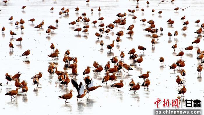在黑河濕地國家級自然保護區高臺段,蜿蜒的河道與開闊的水面已成為候鳥的臨時家園。